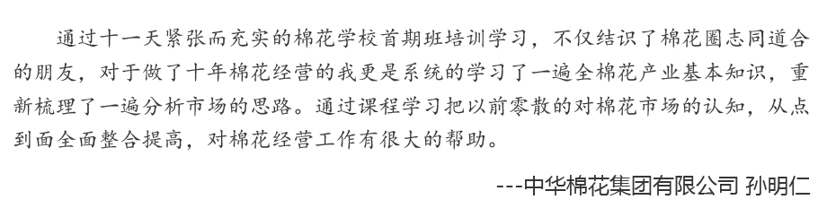 从全球棉花概况开始,系统讲解了棉花的故事、全球棉花产消概况、主产棉国情况、全球纺织趋势大转移以及中国棉业发展和政策等相关课程内容。