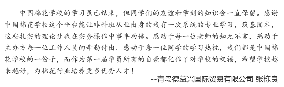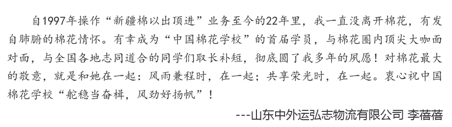 介绍了海关检验检疫的相关法规与工作程序,并对棉花等级检验、长度检验、马克隆值检验进行深入解读,并分享了全国进口棉花问题货物的案例,从而让我们对进口棉质量问题和贸易风险进行高度重视。