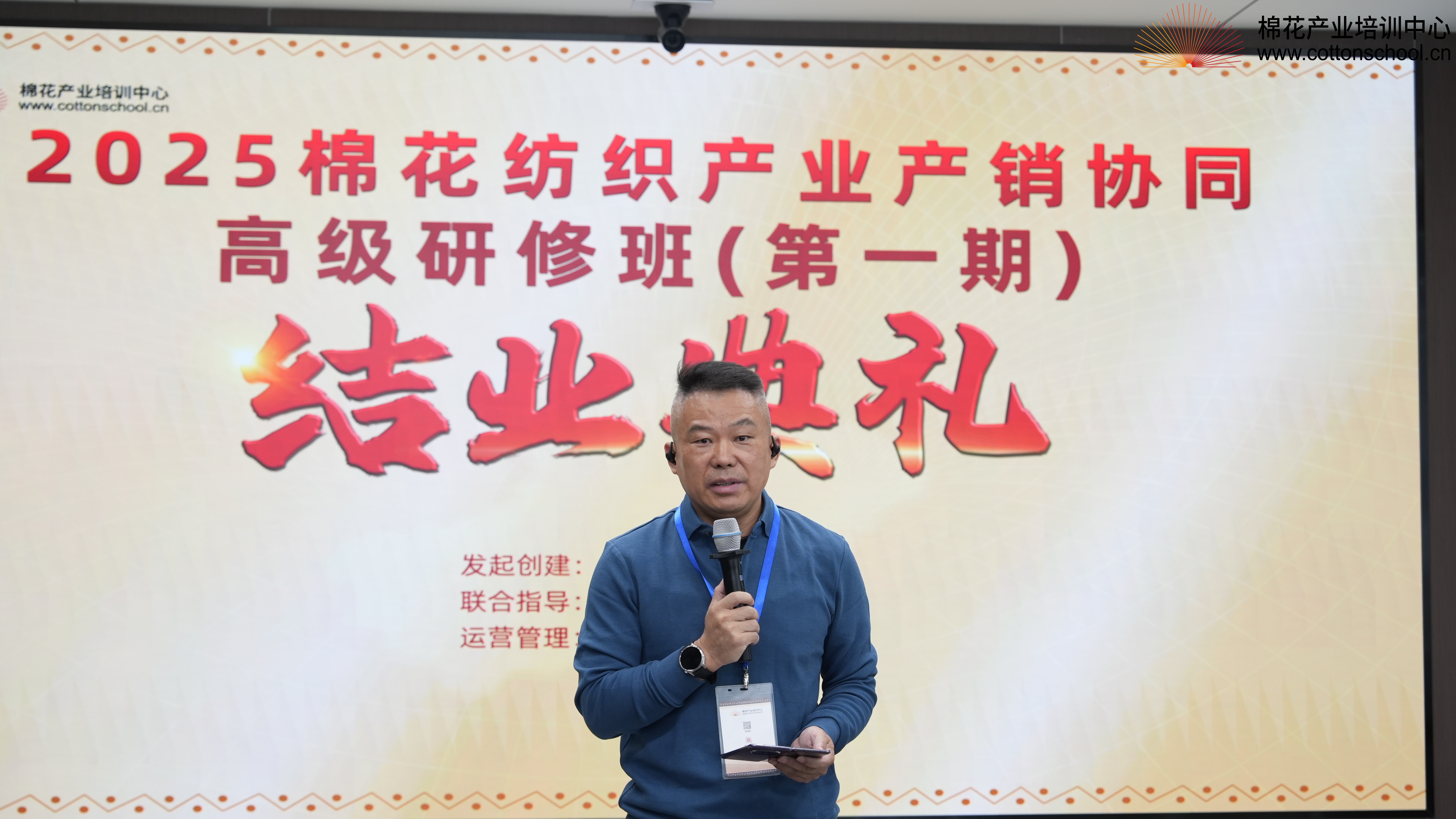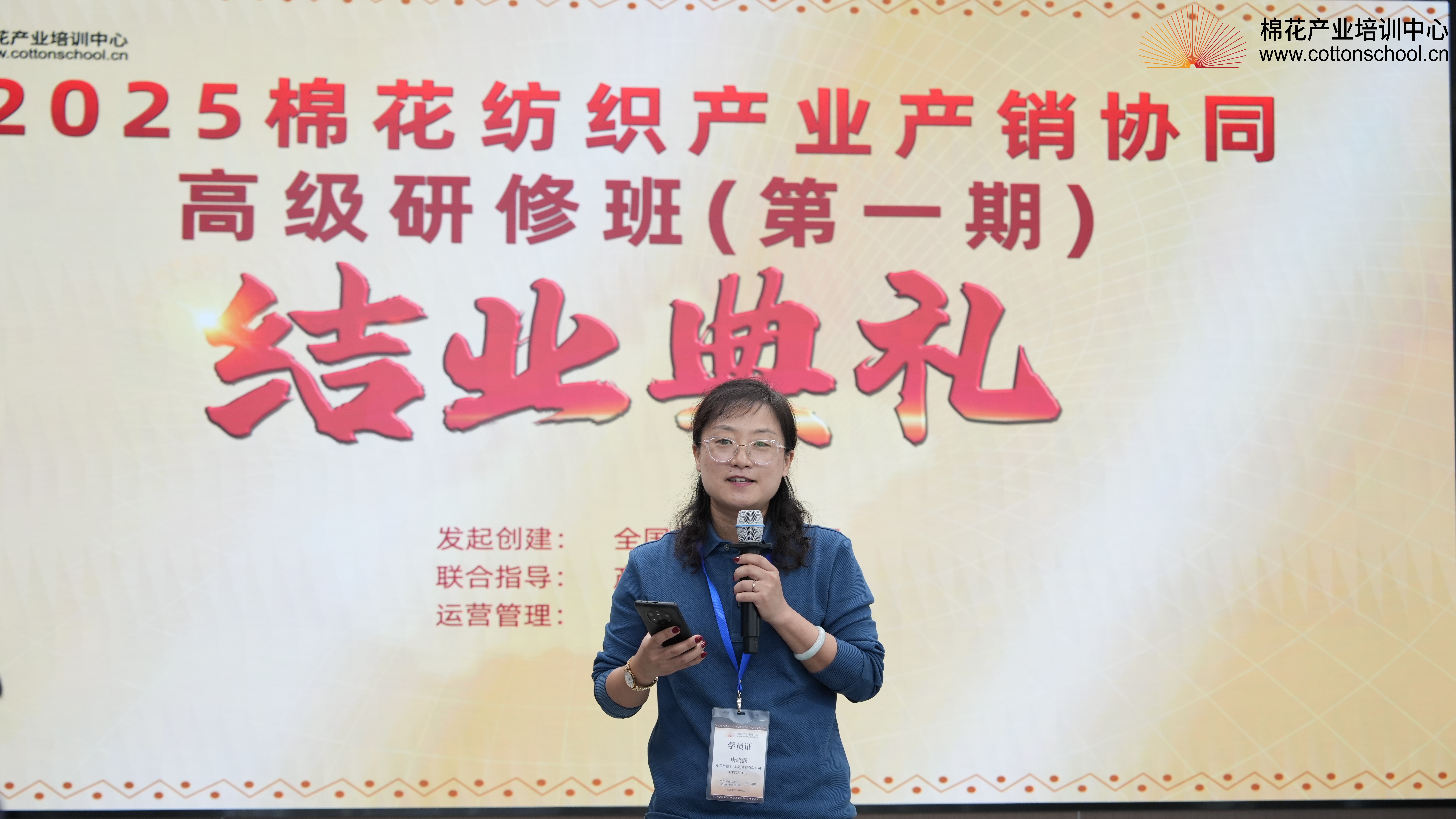 此次研修班以“汇聚产业精英,培养专业人才”为培训使命,19名学员通过“实地走访调研 专业课程学习”的双重模式,深入南疆棉花纺织产业一线。11天里,他们走进产业链上下游企业,与从业者面对面交流;坐进课堂汲取专业知识,在理论与实践的碰撞中深化认知。湖北银丰化纤有限责任公司蔡江波先生和中粮祈德丰(北京)商贸有限公司唐晓露女士作为学员代表发表结业感言。蔡总结合自身调研经历,畅谈对产业发展的新思考,希望大家要持续学习,勇于创新,前行路上要坚轫不拔,始终保持乐观奋进的态度,并祝愿大家学有所用,快、准、狠的发展自身事业;唐总则表示此次南疆之行让她对新疆棉纺行业现状、区域发展潜力及自身工作方向有了更清晰的定位,她呼吁全体学员把握新疆产业发展机遇,找准自身切入点,加强行业内交流合作,与产业同频共振、共促发展。
