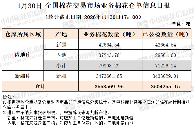 【仓单日报】cnce业务棉花信息(1.30)-ku游体育